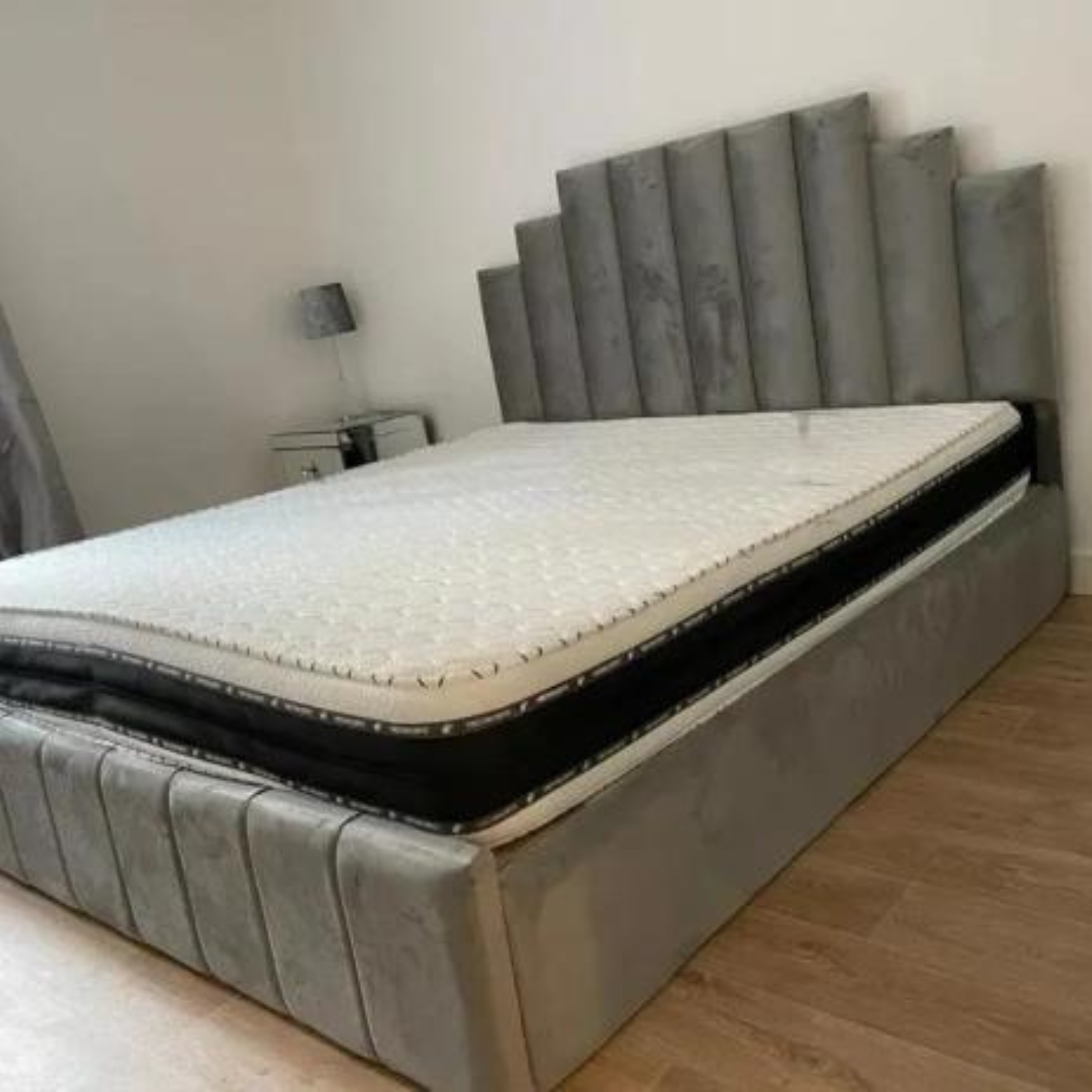Le cadre de lit NATURA gris, disponible en 3 dimensions : 140x190, 160x200 et 180x200, au choix avec ou sans sommier, tissu velours gris de qualité, structure et style en métal renforcé et durable, LITERIE DELUXE vous attend avec ses modèles raffinés et uniques qu'il s'agisse d'un lit simple ou un lit double.
