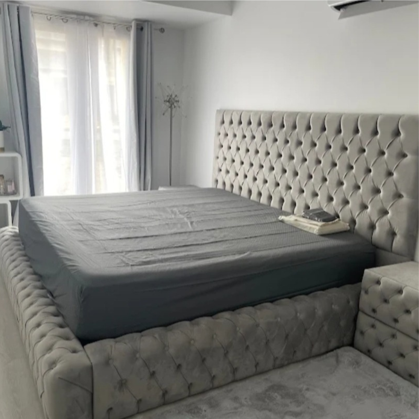 Cadre de lit ROYAL velours gris avec tête de lit capitonné