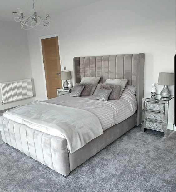 Le cadre de lit TOKYO gris, disponible en 3 dimensions : 140x190, 160x200 et 180x200, au choix avec ou sans sommier, tissu velours gris de qualité, structure et style en métal renforcé et durable, LITERIE DELUXE vous attend avec ses modèles raffinés et uniques qu'il s'agisse d'un lit simple ou un lit double.
