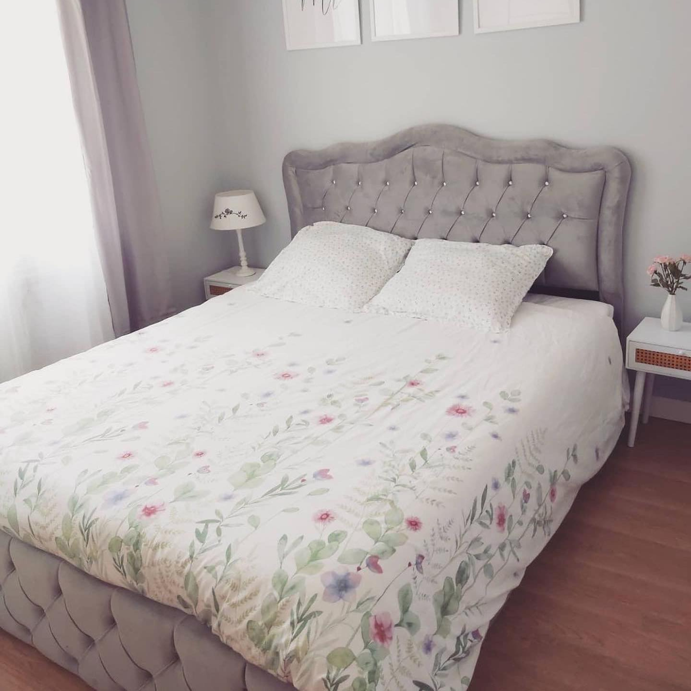 Le cadre de lit VENISE gris apporte une touche magique à votre chambre en combinant des lignes modernes et des touches classiques avec son design spécial. En plus de son aspect moderne et contemporain, il forme le sol confortable de votre lit avec sa structure en métal durable, sa matière en velours de qualité, ses caractéristiques ergonomiques et fonctionnelles.