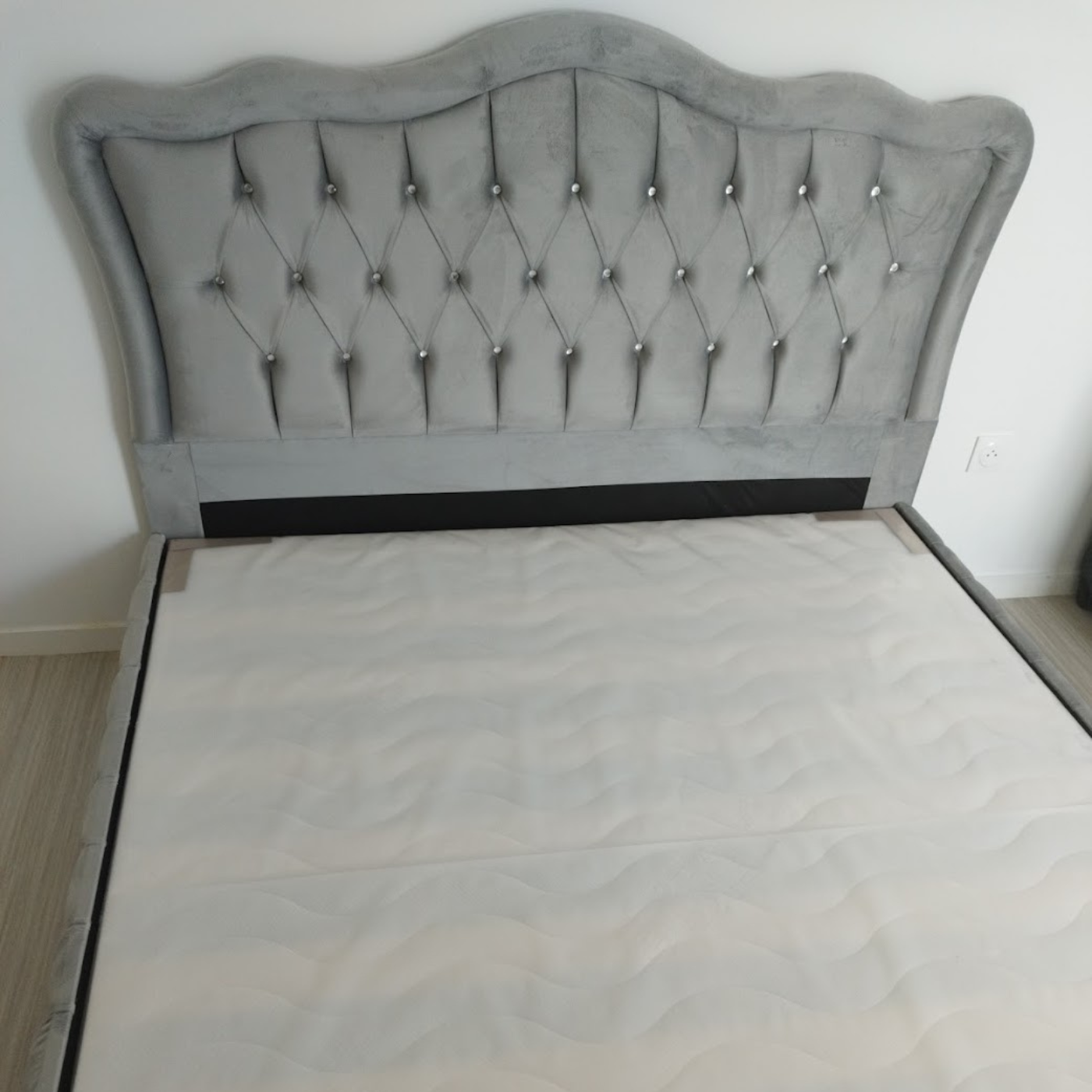 Cadre de lit VENISE velours gris avec tête de lit capitonné