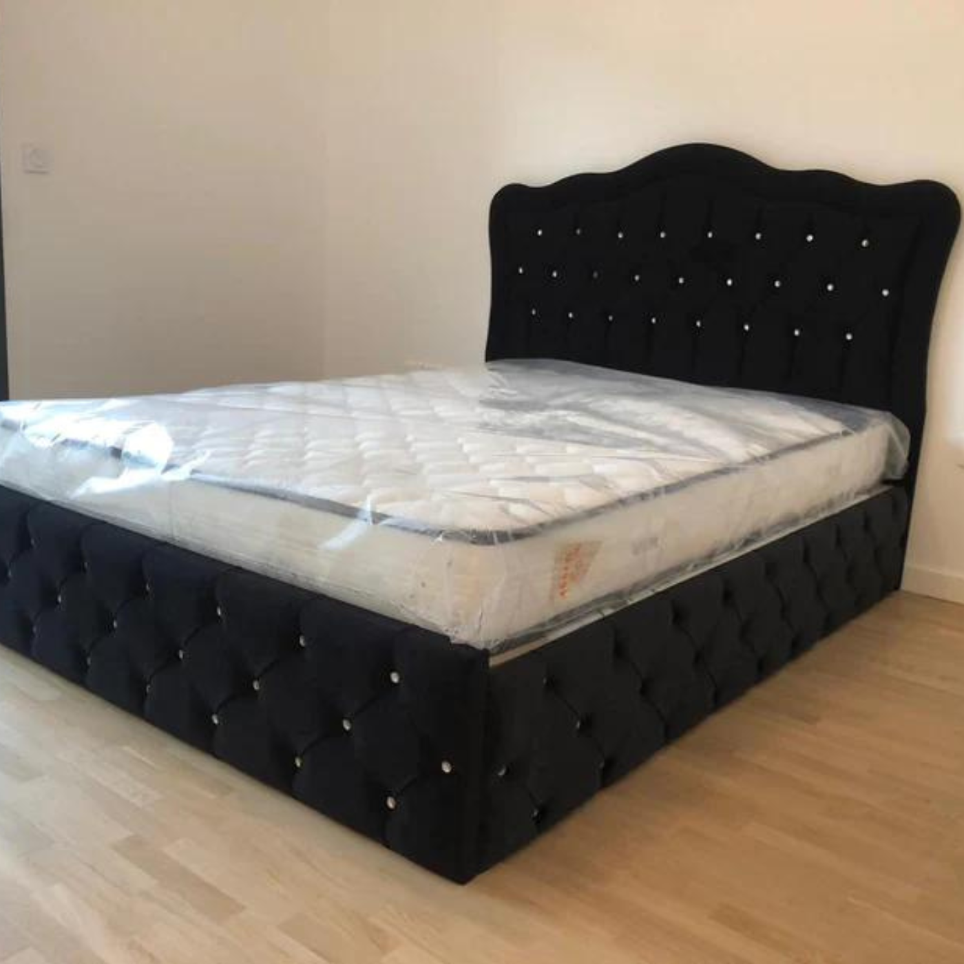 Cadre de lit VENISE velours noir avec tête de lit capitonné