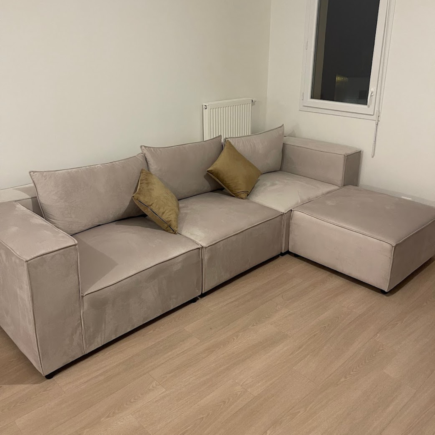 Canapé ELEGANCE velours modulable 3+1 avec pouf