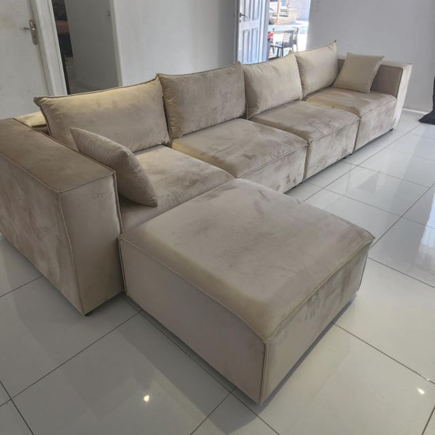 Canapé ELEGANCE velours modulable 4+1 avec pouf