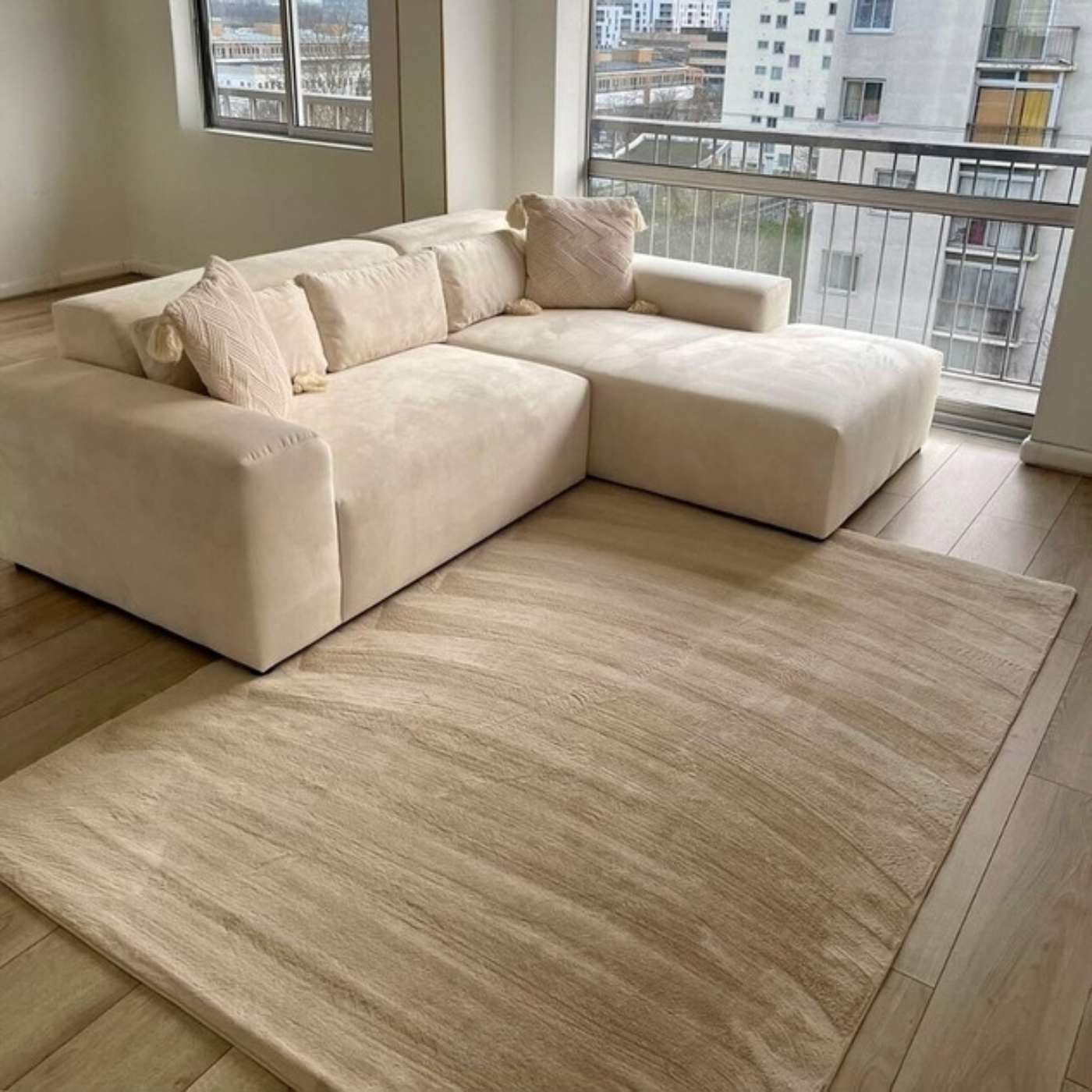 Le canapé MORIS en velours beige est non seulement très élégant, mais aussi très confortable grâce à sa texture unique et à l’amortissement en mousse de qualité supérieure. En outre, ce canapé est très résistant et durable.