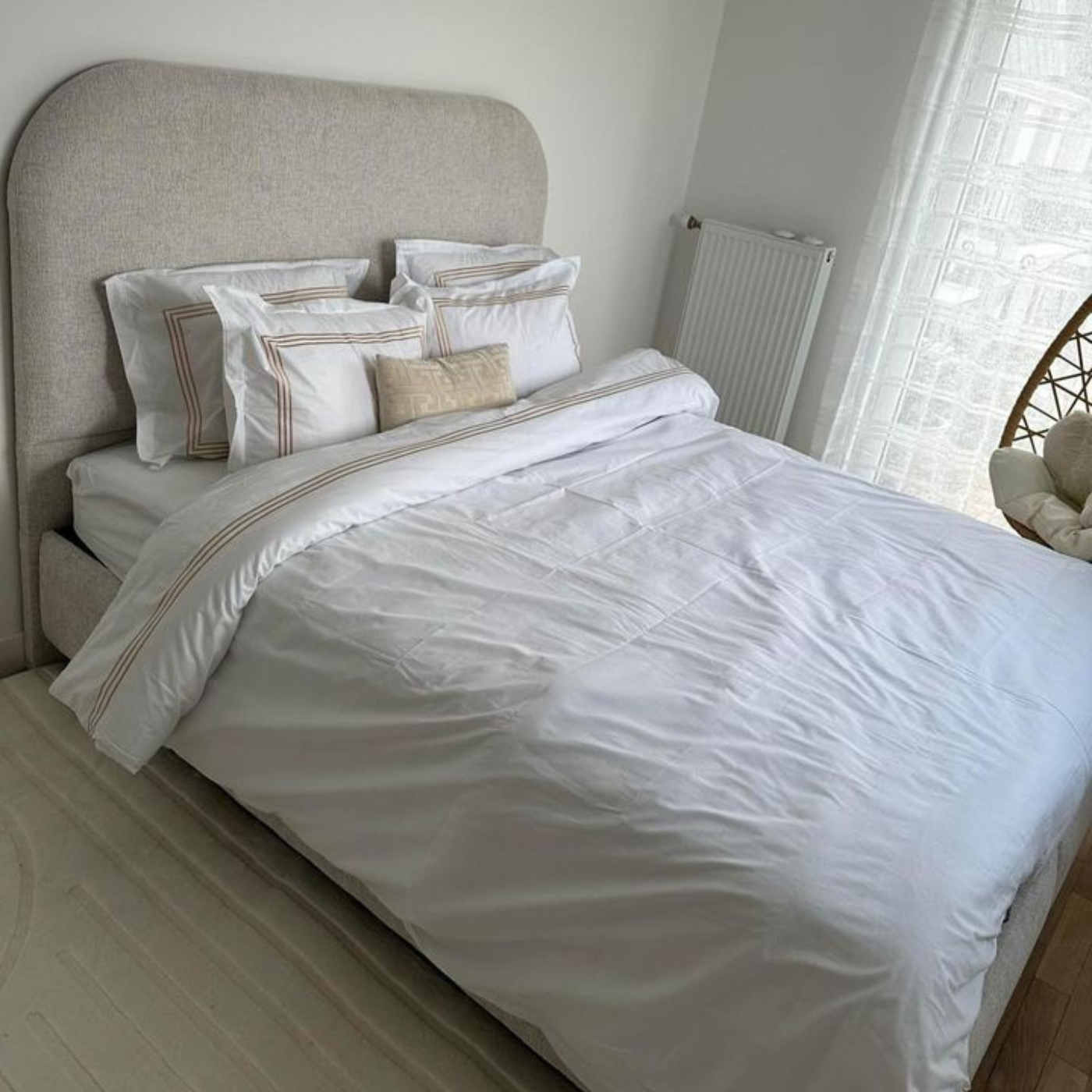 Lit coffre JADE chenille blanc cassé avec tête de lit