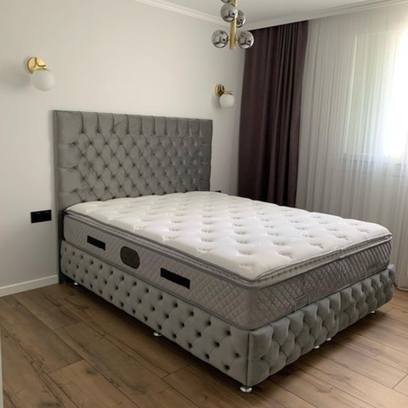 Le lit coffre LAGOS gris, disponible en 3 dimensions : 140x190, 160x200 et 180x200, relevable avec rangement à l'intérieur, tissu velours gris de qualité, structure et style en métal renforcé et durable, LITERIE DELUXE vous attend avec ses modèles raffinés et uniques qu'il s'agisse d'un lit simple ou un lit 2 places.