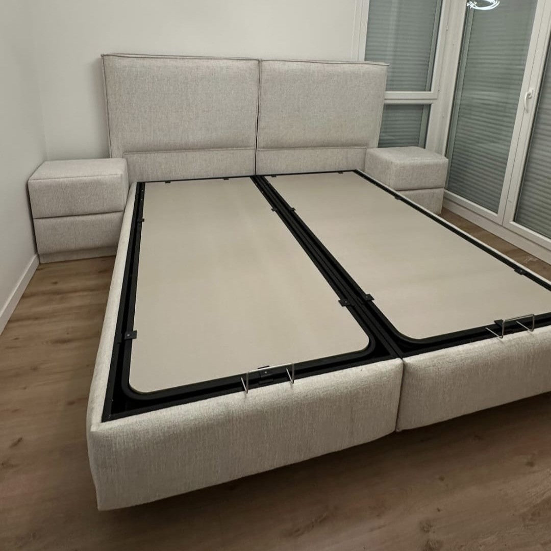 Le lit coffre MAYA blanc cassé, disponible en 3 dimensions : 140x190, 160x200 et 180x200, relevable avec rangement à l'intérieur, tissu velours gris de qualité, structure et style en métal renforcé et durable, LITERIE DELUXE vous attend avec ses modèles raffinés et uniques qu'il s'agisse d'un lit simple ou un lit 2 places.