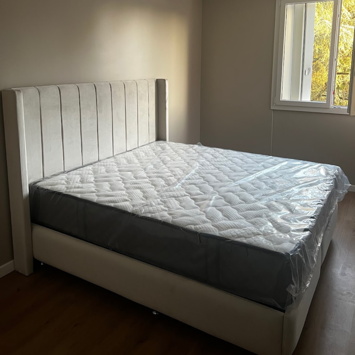 Le lit coffre TOKYO beige apporte une touche magique à votre chambre en combinant des lignes modernes et des touches classiques avec son design spécial. En plus de son aspect moderne et contemporain, il forme le sol confortable de votre lit avec sa structure en métal durable, sa matière en velours de qualité, ses caractéristiques ergonomiques et fonctionnelles.