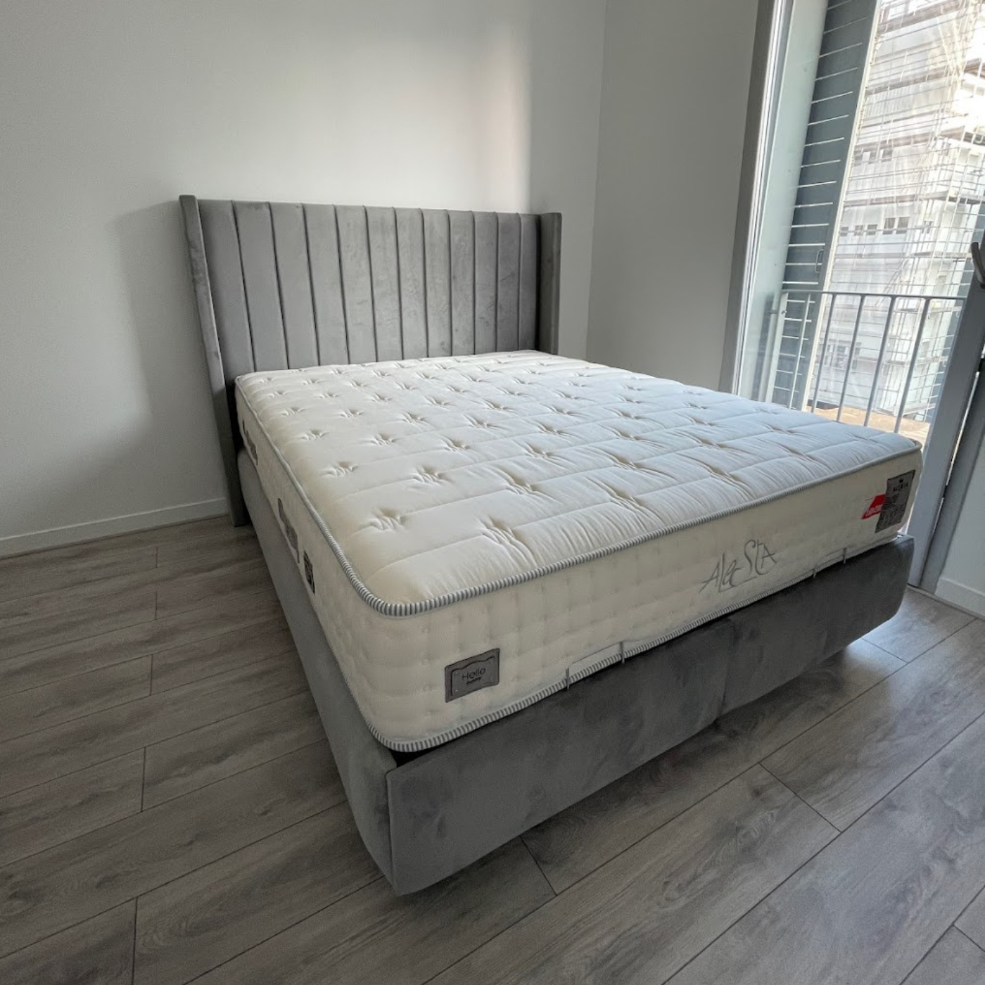 Le lit coffre TOKYO gris, disponible en 3 dimensions : 140x190, 160x200 et 180x200, relevable avec rangement à l'intérieur, tissu velours gris de qualité, structure et style en métal renforcé et durable, LITERIE DELUXE vous attend avec ses modèles raffinés et uniques qu'il s'agisse d'un lit simple ou un lit 2 places.