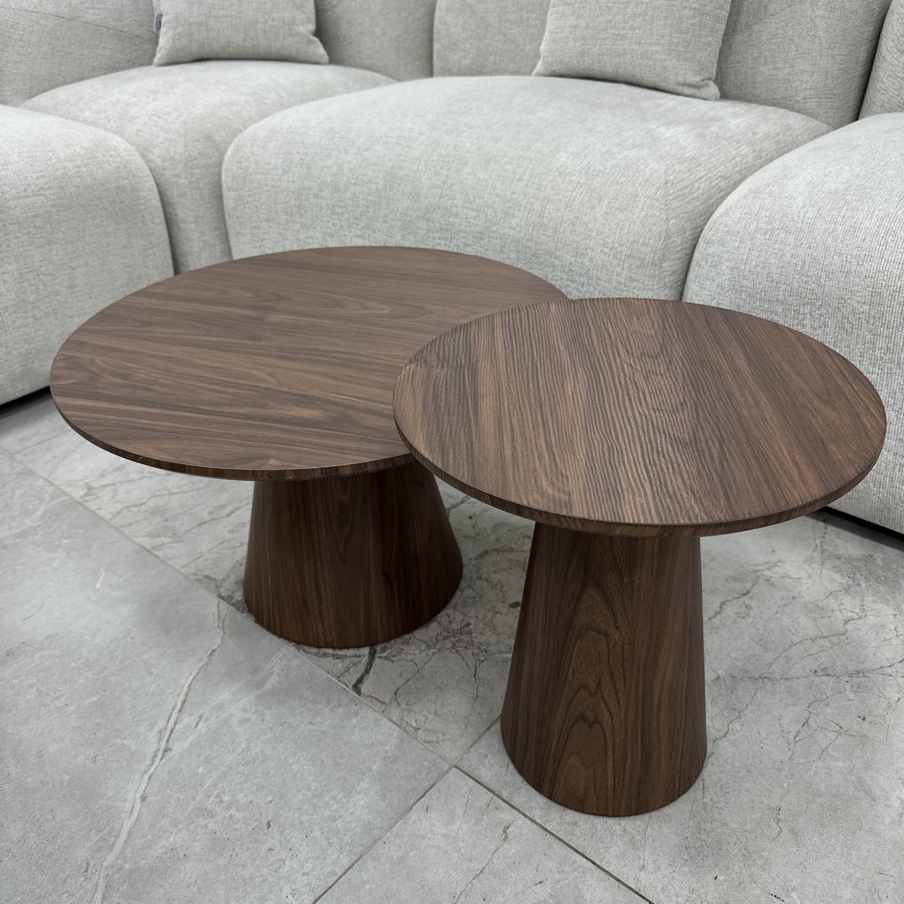 Ajoutez une touche d'élégance et de fonctionnalité à votre salon avec la table basse ALBA Walnut. Conçue en MDF effet bois foncé, elle allie style rustique et modernité. Son format astucieux, idéal pour les petits espaces, offre une solution pratique et tendance. Profitez d’un ensemble de 2 tables au design raffiné et accessible !